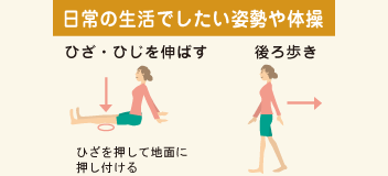現代生活は同じ姿勢の繰り返し。使う筋肉が限られているため、使わない筋肉が早く老化します。普段行わない姿勢や体操で身体をまんべんなく使うようにしましょう。
